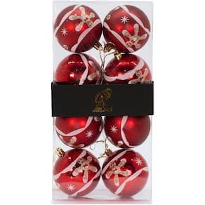 3 Kit Com 8 Bolas Para Árvore De Natal Vermelha E Branco Com Glitter Dourado 80mm;