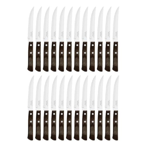 Conteúdo do Kit: 24 - Facas de Churrasco Tramontina Polywood Inox Cabo Castanho.