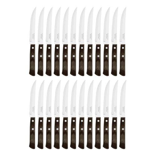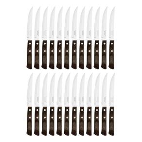 Você que precisa de talheres de qualidade na hora seus convidados e principalmente para o dia a dia! Agora você tem a Faca de Churrasco Tramontina Polywood Inox Cabo Castanho de 5 polegadas, seu churrasco no jantar ou almoço terá o charme e a qualidade que você merece.Com lâmina produzida em aço inox com tratamento térmico, a faca possui fio de alta durabilidade e resistência.Possui cabo em madeira tratada Polywood que proporciona a combinação perfeita de material e cor, ideal para ambientes residenciais e comerciais.Além de tudo isso, pode ir à máquina de lavar louças facilitando seu dia a dia ainda mais.Este modelo é ideal para festas, restaurantes, buffet, bar e hotéis. Legal né? Compartilhe com seus Amigos!Conteúdo do Kit:24 - Facas de Churrasco Tramontina Polywood Inox Cabo Castanho.Características do produto:Lâmina: Em Aço Inox;Cabo: Madeira Polywood Castanho.Dimensões Produto (Compr. X Larg. X Alt.):Comprimento: 21,2 cmLargura: 1,0 cmAltura: 1,9 cmTAGS e palavras chave do produto:Restaurantes, Talheres, Faqueiro, Atacado, Buffet, Bar, Hotel, Faca de Serra, Faca de Serrinha, Faca de Churrasco, Faca Para Churrasco, Faca de Mesa, Faca Para Carne 5 Polegadas, Talher, Talheres Uso Diário, Jogo de Talheres, Faqueiro, Jogo de Faqueiros, Jogo de Facas, Conjunto de Facas, Cabo Castanho, Tramontina, Polywood, Castanho, Cabo de Madeira.*imagens ilustrativas.Os objetos que ambientam as imagens, não acompanham o produto. Fique atento: As cores das imagens podem sofrer alterações devido a luminosidade, configurações do monitor e até mesmo a percepção do usuário.