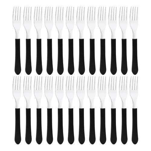 Conteúdo do Kit: 24 - Garfos de Mesa Tramontina Leme Inox Cabo Preto.