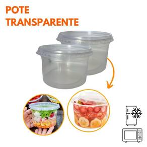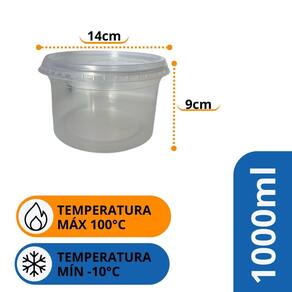 Kit 24 pote descartável redondo com tampa transparente 1000ml Cor: transparente Bem-vindo à nossa loja