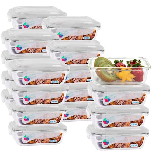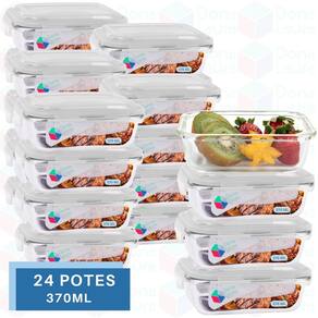 Kit 24 Potes De Vidro Retangular 370ml Marmita Fitness Frutas