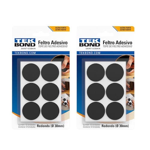 Informações:para pés de cadeiras, sofás, mesas, camas etc. É a solução ideal para Proteger o piso de arranhões e eliminar os ruídos na hora de afastar os Móveis. Proteger os pisos de arranhões é mais simples do Que você imagina. Basta aplicar os Feltros Adesivos da Tekbond nos pés Das cadeiras, mesas, sofás, camas e outros móveis. Eles têm grande poder De aderência, são feitos com materiais de alta qualidade e resistência. Eles Evitam o atrito na hora de arrastar cadeiras, afastar sofás, camas etc. Assim o esmalte natural do piso permanece intacto. Eles eliminam aquele Ruído irritante do arrastar de móveis pesados, principalmente na hora Da limpeza. É o fim das batidas desagradáveis de cadeiras em contato com O chão. Livre-se dos ruídos e mantenha revestimentos sempre bonitos, com cara de novos