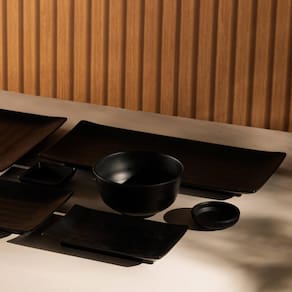 Dimensões de cada prato Lyor: 35cm (C) x 16cm (L) x 2,5cm (A);