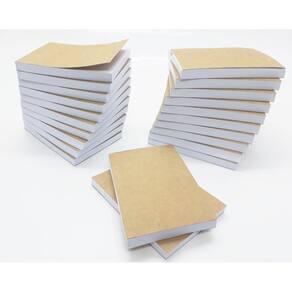 - Kit com 25 Blocos de anotações com 100 folhas, totalizando 2500 folhas - Medidas 10x15cm - Sem impressão, folhas brancas - Blocado com cola branca - Capa e Contra Capa em Kraft - Não possui carbono