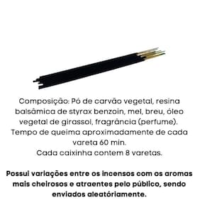 o kit 25 caixas 200 varetas incenso indiano bic aromas é perfeito para quem busca um ambiente harmonioso e perfumado. Produzido de forma artesanal, esse incenso é feito a partir de uma seleção nobre de óleos de flores e plantas naturais, garantindo um aroma excelente. Esse incenso é apreciado em todo o mundo e possui diversas utilidades. Além de purificar o ambiente e atrair energias positivas, ele pode ser utilizado para limpeza espiritual, práticas de yoga ou meditação e simplesmente para aromatização. Suas essências têm funções diversas, proporcionando uma sensação agradável e melhorando o equilíbrio emocional. Composto por 25 caixas com 500 varetas, esse kit é perfeito para quem deseja ter incenso sempre à disposição. Cada caixa pesa aproximadamente 230 g e o tempo de queima é de 45 a 60 minutos. O incenso indiano bic é da marca bic, uma marca reconhecida mundialmente pela qualidade de seus produtos. É fabricado na índia, país conhecido por sua tradição na produção de incensos. A composição desse incenso inclui macerados, pó de sândalo branco, carvão, resinas vegetais, óleo aromático e vareta de bambu. Essa combinação de ingredientes proporciona um aroma único e duradouro. Para utilizar o incenso, basta acender a vareta e deixar queimar em brasa. É importante manter a vareta acesa sob vigilância e longe de produtos inflamáveis. Evite contato com os olhos e mucosas. Além disso, mantenha os incensos fora do alcance de crianças e animais. Esse kit é ideal para quem busca um ambiente mais harmonioso e perfumado. Aproveite e adquira agora mesmo o kit 25 caixas 200 varetas incenso indiano bic aromas e transforme o seu ambiente com uma fragrância única e agradável. Marca: Meta Atacado