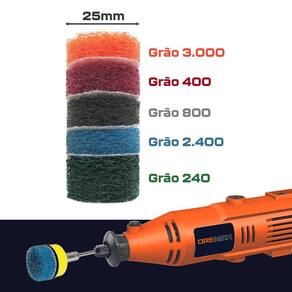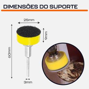 Kit 25 Esponjas de Lixa 25mm Almofada com Suporte Haste 3mm Base Aderente para Micro Retíficas