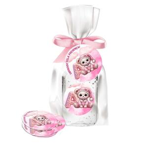 Kit 25 Lembrancinhas Alcool Gel Ursinha Rosa Letra A