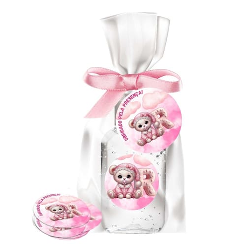 Kit Mini Álcool Gel Perfumado - Delicadeza, Proteção e Muito Charme Apresentamos o kit ideal para quem quer oferecer cuidado e carinho de forma prática e cheia de ternura Nosso mini frasco de álcool gel contém 30ml e mede apenas 7cm, perfeito para levar na bolsa, no carrinho ou ter sempre à mão. Cada frasco é suavemente perfumado com a fragrância de algodão, um cheirinho aconchegante e delicado, que lembra o frescor e a pureza do seu bebê. O diferencial mais encantador Todos os frascos possuem uma linda estampa de ursinha, acompanhada de uma letra do alfabeto. Perfeito para enfeitar, presentear ou simplesmente espalhar cuidado com um toque lúdico e alegre. O kit contém 25 unidades, enviado desmontado, para que você possa montar com carinho para sua ocasião especial: maternidade, chá de bebê, batizados ou festinhas. O que acompanha o kit: frascos Cristal de 30ml, com tapas transparentes com alcool gel com cheirinho de bebê 25 frascos preenchidos com álcool gel com fragrância de algodão 25 saquinhos de celofane 25 fitas na delicada cor rosa ou variada de acordo com a disponibilidade em sempre presamos a melhor combinação 25 tags redondas para dar um toque final 25 adesivos redondos, cada um com a estampa fofa da ursinha + letra do alfabeto Proteção e carinho em cada detalhe, com o cheirinho mais doce do mundo e a fofura das nossas ursinhas Garanta já o seu kit e torne cada momento ainda mais especial