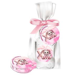 Kit 25 Lembrancinhas Alcool Gel Ursinha Rosa Letra X