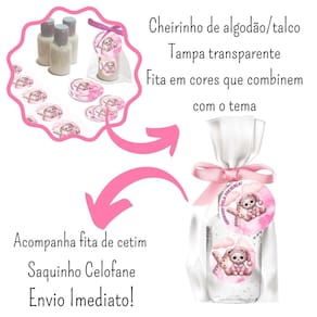 Kit Mini Álcool Gel Perfumado - Delicadeza, Proteção e Muito Charme Apresentamos o kit ideal para quem quer oferecer cuidado e carinho de forma prática e cheia de ternura Nosso mini frasco de álcool gel contém 30ml e mede apenas 7cm, perfeito para levar na bolsa, no carrinho ou ter sempre à mão. Cada frasco é suavemente perfumado com a fragrância de algodão, um cheirinho aconchegante e delicado, que lembra o frescor e a pureza do seu bebê. O diferencial mais encantador Todos os frascos possuem uma linda estampa de ursinha, acompanhada de uma letra do alfabeto. Perfeito para enfeitar, presentear ou simplesmente espalhar cuidado com um toque lúdico e alegre. O kit contém 25 unidades, enviado desmontado, para que você possa montar com carinho para sua ocasião especial: maternidade, chá de bebê, batizados ou festinhas. O que acompanha o kit: frascos Cristal de 30ml, com tapas transparentes com alcool gel com cheirinho de bebê 25 frascos preenchidos com álcool gel com fragrância de algodão 25 saquinhos de celofane 25 fitas na delicada cor rosa ou variada de acordo com a disponibilidade em sempre presamos a melhor combinação 25 tags redondas para dar um toque final 25 adesivos redondos, cada um com a estampa fofa da ursinha + letra do alfabeto Proteção e carinho em cada detalhe, com o cheirinho mais doce do mundo e a fofura das nossas ursinhas Garanta já o seu kit e torne cada momento ainda mais especial