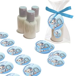 Apresentamos o kit ideal para quem quer oferecer cuidado e carinho de forma prática e cheia de ternura! Nosso mini frasco de álcool gel contém 30ml e mede apenas 7cm, perfeito para levar na bolsa, no carrinho ou ter sempre à mão. Cada frasco é suavemente perfumado com a fragrância de algodão, um cheirinho aconchegante e delicado, que lembra o frescor e a pureza do seu bebê.