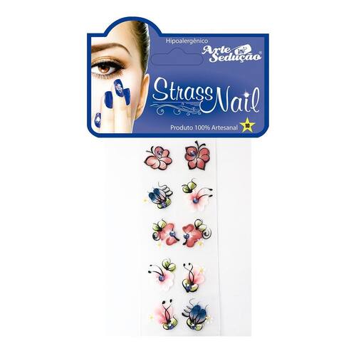 Todos adesivos da linha STRASS NAIL vem com pedraria strass, com cores que combinam com cada desenho.