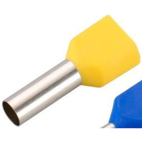 - Modelo TE2510 Terminal Pré-isolado Tubular Ilhós Duplo 2,5mm Comp. Do Tubo: 10mm Cor: Azul Temperatura: 105º C - Retardante de Chamas Conforme Certificação: UL 94V - 2