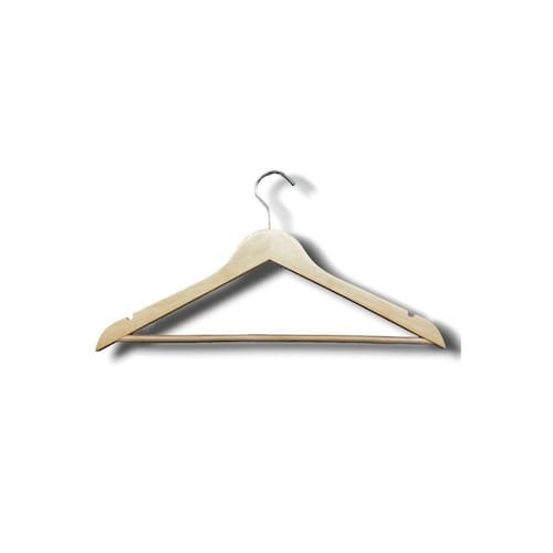 KIT 25UN.CABIDE DE MADEIRA COM BARRA C/ GANCHO E PRESILHA CROMADO