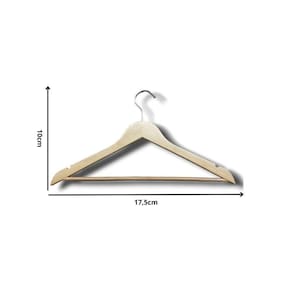 O Kit 25 Cabides de Madeira com Barra, Gancho e Presilha Cromado oferece uma solução clássica e versátil para a organização de roupas. Com medidas de 10 cm de altura e 17,5 cm de largura, esses cabides são ideais para diversas peças. Fabricados em madeira resistente, com gancho e presilha cromados, proporcionam durabilidade e elegância. Adquira este kit para uma exposição organizada e sofisticada de vestuário em sua loja.