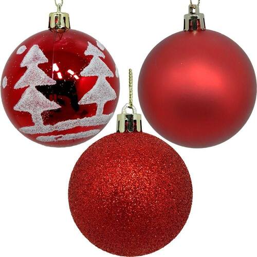 3 Kit Com 9 Bolas Para Árvore De Natal Vermelho com Glitter Vermelho E Branco 55mm;