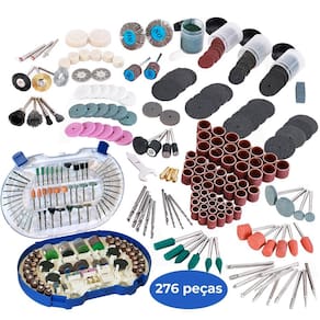 Kit 276 Acessórios para Micro Retíficas Completo Profissional Padrão Dremel Multimarcas Dremax Todos os acessórios para efetuar qualquer tipo de trabalho com micro retíficas em uma só maleta. Tudo que você precisa para lixar, gravar, polir, desbastar, cortar, furar, entalhar, rebarbar, e muito mais, - Marca: Dremax - Modelo: KA-276 - Acessórios de altíssima qualidade - Kit completo com 1276 peças para lixar, polir, esmerilhar, limpar, gravar, desbastar e furar - Indicado para todas as marcas de micro retíficas, como Dremel, Charbs, Einhell, Black+Decker, Dremax, Mondial, Vonder, Titanium, Western, Ingco, Gamma, Wesco, etc. - Dimensões da Maleta: 300 x 270 x 65mm - Peso bruto: 800 gramas - : 90 dias contra defeitos de fabricação ITENS INCLUSOS - 36 Discos de Corte 24mm - 36 Discos de Lixa 20mm - 36 Discos de Lixa Adesivas 20mm - 18 Tubos de Lixa 12,7mm 1/2 - 16 Tubo de Lixa 9,6mm 3/8 - 18 Tubos de Lixa 6,4mm 1/4 - 2 Discos de Corte Diamantado 20mm - 16 Discos de Corte Reforçados Fibra de Vidro - 6 Rebolos 25mm de Pedra Rosa - 6 Rebolos 25mm de Carboneto de Silício - 6 Rebolos 25mm de Alundum Branco - 2 Discos de Borracha 22mm - 2 Discos de Feltro 25,4mm - 12 Discos de Feltro 12,7mm - 1 Ponta de Feltro 10mm - 2 Discos Flap 32mm G80 - 2 Discos Flap 15mm G80 - 3 Pinças 1.2, 2.4 e 3mm - 3 Escovas de Nylon - 3 Escovas de Aço - 1 Escova de Latão - 6 Pontas Montadas de Óxido de Alumínio - 6 Pontadas Montadas de Borracha - 4 Pontadas Montadas de Carbureto de Silício - 12 Pontas Diamantadas - 9 Brocas de Diferentes Tamanhos - 1 Chave para Aperto - 2 Hastes para Discos de Corte - 1 Suporte para Lixa de Discos Adesivas - 1 Suporte para Tubos de Lixa 1/4 - 1 Suporte para Tubos de Lixa 3/8 - 1 Suporte para Tubos de Lixa 1/2 - 1 Suporte para Discos de Feltro - 1 Pedra para Afiar - 1 Pasta para Polir - 3 Frascos para Discos - 1 Prática Maleta