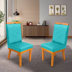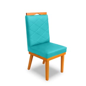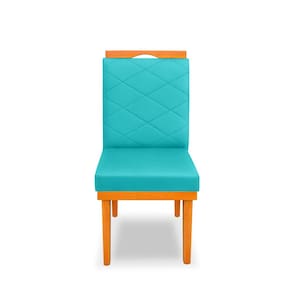 KIT 2Cadeira Ana Matelassê tecido suede com Base Fixa de Madeira Maciça e Puxador Castanho - Azul Turquesa
