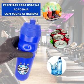Kit 2un squeeze top térmica 550ml garrafa azul água esporte bike time grêmio oficial tricolor gaucho Não dispense da hidratação durante a atividade física e leve sempre com você a squeeze térmica top 550ml - grêmio. Super pratica e fácil de carregar. Seu revestimento ajuda a conservar a temperatura da bebida por mais tempo.