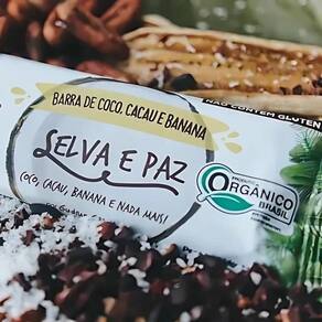 A Barra de Frutas Coco, Cacau e Banana Orgânica Selva e Paz é feita apenas com apenas três frutos: coco, cacau, banana. Uma combinação de antioxidantes que ajudam a aumentar o sistema imunológico.