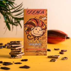 O chocolate caramelo crocante vegano cookoa é uma versão nutritiva e doce na medida, ideal para oferecer às crianças.