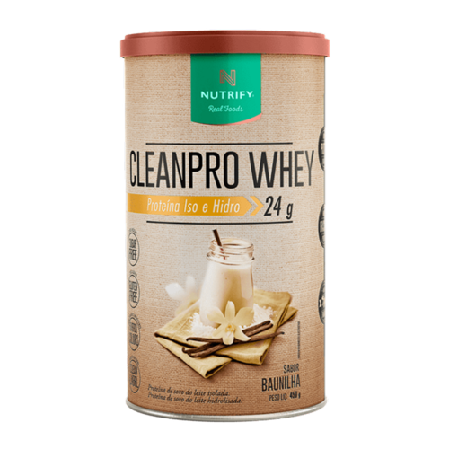 Cleanpro Whey Protein Isolado Baunilha Nutrify conta, em sua fórmula, com Whey Protein Isolado e Whey Protein Hidrolisado, ambos são ótimas fontes de proteínas de alto valor biológico e favorecem o aumento e a manutenção de massa magra, assim como, ajudam na melhora da composição corporal e qualidade de vida.