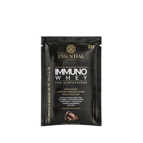 Immuno Whey Pro-Glutathione Cacao Essential Nutrition é fonte dos principais aminoácidos, vitaminas e minerais precursores de glutationa, uma importante substância para nosso organismo.