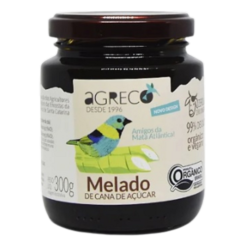 O Melado de Cana Orgânico Agreco 300g é um xarope produzido a partir da evaporação do caldo de cana ou durante a produção de rapadura, e tem forte poder adoçante. Conserva todos os nutrientes da cana, como ferro, cálcio, selênio, manganês e cobre.