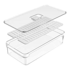 Ventilação e Humidade controlada Organização e otimização de espaço Com Bandeja de Drenagem Removível Capacidade 2,8 L Organizadores De Geladeira De Drenagem Com Respiradouro Caixa de Armazenamento de Frutas Legumes E Vegetais Conjunto Linha Clear Fresh OU