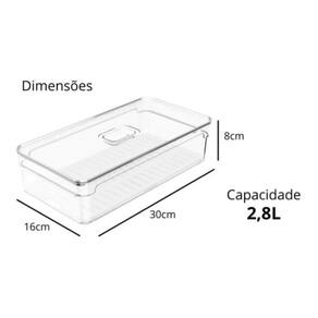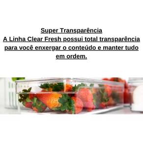Com o organizador de geladeira Clear Fresh, você terá organização e irá conservar e manter o frescor de seus alimentos por mais tempo, a tampa com ventilação ajustável mantém o nível de umidade ideal para cada tipo de alimento, mantendo-os frescos por mais tempo. Possui bandeja de drenagem que impede que a umidade acumulada se mantenha no alimento, evitando o murchamento e deterioração precoce.