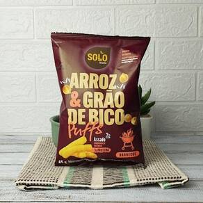 O snack puffs arroz e grão de bico barbecue solo snacks vai te surpreender com seu sabor delicioso e o mais importante, saudável perfeito para comer no lanche da tarde.