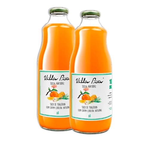 O Suco de Tangerina com Capim Cidreira Sem Açúcar Villa Piva é produzido somente com 2,2kg de tangerina por litro, sem elementos artificiais, corantes, açúcares ou conservantes.