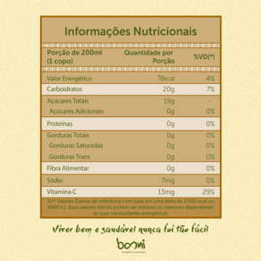 Ingredientes: Suco de tangerina integral (98,5%) e extrato de capim cidreira (1,5%). NÃO CONTÉM GLÚTEN.