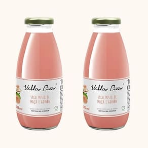 O Suco de Goiaba e Maçã Integral Sem Açúcar Villa Piva 300ml é produzido somente com 2kg de goiaba por litro e adoçado com suco de maçã, sem elementos artificiais, corantes, açúcares ou conservantes.