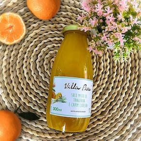 O Suco de Tangerina com Capim Cidreira Sem Açúcar Villa Piva 300ml é produzido somente com 2,2kg de tangerina por litro, sem elementos artificiais, corantes, açúcares ou conservantes.