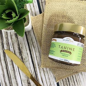 O Tahine com Cacau Sésamo Real é uma deliciosa combinação de Tahine Tradicional pasta de gergelim descascado , Cacau 100%, Nibs de cacau e Açúcar Demerara orgânico.x000d