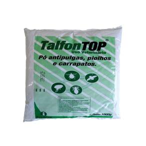 Kit 2x talfon top 1 kg - pó antipulgas, piolhos e carrapatos indubras Talfon top é indicado no controle, tratamento e prevenção de piolhos e carrapatos de aves; pulgas e carrapatos de cães; moscas dos currais, estábulos, pocilgas e galinheiros musca domestica e stomoxys calcitrans ; punilha de couros; insetos e ácaros em instalações. Contraindicação Não existem quando o produto é administrado conforme as indicações. Proibido para felinos. Fórmula Cada 100 g contém: Carbaril ................................................. 2,0 g Cipermetrina .......................................... 0,5 g Excipiente .S.P. ..................................... 100 g Modo de usar Uso contra pulgas e carrapatos: polvilhar pequenas quantidades no sentido contrário aos pelos do animal, evitando que o produto atinja os olhos, boca e focinho. Aplicar nos locais onde os animais frequentam. Uso contra moscas, em esterqueiras e cama dos animais: polvilhar entre 50 a 100 g do produto por m, inclusive nos arredores. Uso em ninhos: polvilhar em cada um uma quantidade de produto equivalente a 1 a 3 colheres de sopa. Uso externo: aplicar talfon top por polvilhamento nas instalações em uma proporção de 50 a 100 g por m2, evitando bebedouros e comedouros. Marca: Não Informado