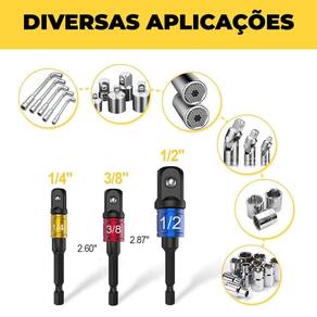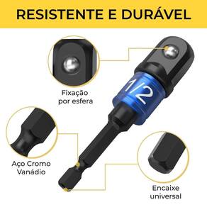Jogo 3 adaptadores de soquete aço cr-v 1/4 3/8 1/2 para parafusadeira Chega de ficar trocando de ferramenta a todo momento Com o jogo de adaptadores de soquete 3 peças em aço cromo vanádio, você transforma sua parafusadeira ou furadeira em uma verdadeira máquina de torque, ganhando agilidade, versatilidade e produtividade em qualquer montagem, reparo ou manutenção. Vantagens que você sente na hora: - compatível com parafusadeiras e furadeiras de encaixe sextavado 1/4 - fabricado em aço cr-v cromo vanádio - resistência máxima ao desgaste - 3 tamanhos essenciais para o dia a dia - e doméstico - ideal para montagens, móveis, automóveis, marcenaria, hidráulica e mais - compacto, leve e fácil de guardar O que você recebe - 1 adaptador 1/4 x 65mm - 1 adaptador 3/8 x 65mm - 1 adaptador 1/2 x 72mm Resistência Fabricado em aço cromo vanádio conhecido pela alta durabilidade, resistência ao impacto e precisão no encaixe. Supera aço carbono comum. Pode ser utilizado com impacto Compatibilidade: - parafusadeiras com encaixe sextavado 1/4 - furadeiras elétricas com mandril - chaves manuais com entradas compatíveis 1. Serve em parafusadeira comum Sim desde que o encaixe seja sextavado padrão 1/4, funciona perfeitamente. Também pode ser em furadeiras com mandril comum. 2. Posso usar com chave de impacto Sim, mas com moderação. Esses adaptadores não são específicos para impacto industrial, mas aguentam bem uso intenso em parafusadeiras de impacto leve a moderado. 3. É feito de aço comum Não é feito de aço cromo vanádio cr-v , muito mais durável e resistente à torção e desgaste do que o aço carbono convencional. 4. Posso usar em trabalhos automotivos Sim é ideal para uso em manutenções leves a médias, desde montagem de peças, desmontagens e ajustes com parafusadeiras. 5. Tem trava de segurança ou de retenção Sim. Os adaptadores possuem de retenção, que ajuda a manter o soquete firme durante o uso. Marca: Não Informado