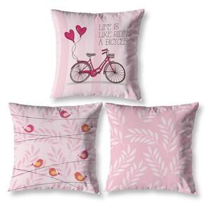 Kit 3 Almofadas Cheias 40 X 40 Estampadas Vintage Bike Rosa