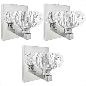Descrição: - Materiais: metal e cristal k9. - Dimensões do cristal CxLxA : 7 cm x 7 cm x 4 cm - Dimensões da base: Altura: 12 cm Largura: 10 cm Profundidade: 2 cm - Profundidade total da arandela: 10 cm