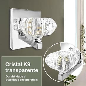 Os cristais K9 são conhecidos por sua durabilidade e qualidade excepcionais, garantindo que a arandela mantenha seu brilho e beleza ao longo do tempo. Extremamente versátil, combinando em uma variedade de estilos de decoração, desde os mais clássicos até os mais contemporâneos.