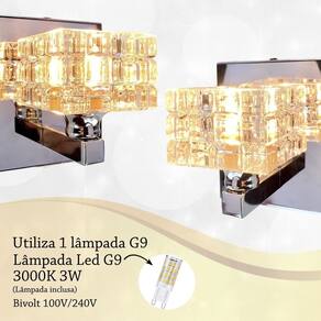 Kit 3 Arandela De Cristal K9 Cromado Para Quarto Bet38 + Led