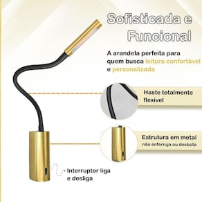 Kit 3 Arandela Leitura Cabeceira Led 3000K 3W Bet66 A arandela de leitura combina funcionalidade e elegância em um design compacto e versátil. Com lente difusa, ela oferece uma iluminação suave e homogênea, perfeita para leitura ou atividades que exigem concentração, sem causar ofuscamento. A haste flexível adiciona praticidade, permitindo o ajuste da direção da luz no ponto da sua preferência. Neste kit contem: - 03 Arandelas Descrição da arandela: - Material: metal - Medidas: Estrutura: --comprimento: 3,5 cm --altura: 11 cm --profundidade: 4,5 Haste: --comprimento: 36 cm --altura total da arandela: 47 cm -led: Led integrados 3000K; -potência total: 3W. -tensão: 100-240V Bivolt ; Não necessita de lâmpada. Led integrado. Marca: Não Informado Ean: 7794879779961