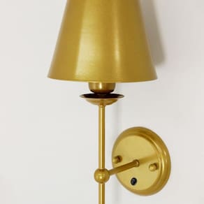 Modelo : 6003 Cor es : dourado Material : alumínio Cúpula de tecido : 17cm x 16,5cm Base canopla : 12cm Soquete da luminária : e27 Número de lâmpadas : 1 lâmpada Voltagem : 127v / 220v Medida : 50cm x 19cm x 16,5cm Conteúdo da embalagem : 3 arandela