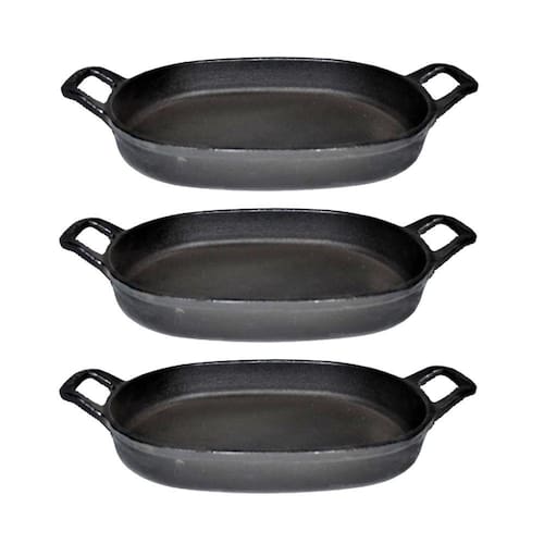 03 Assadeira de Ferro Fundido Lisa Oval Alça Ferro Sem Tampa 35x24cm.