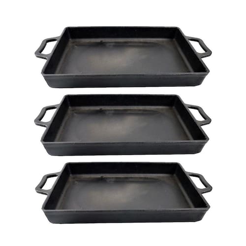 03 Assadeira Ferro Fundido Lisa Retangular Alça Ferro 40x26cm.
