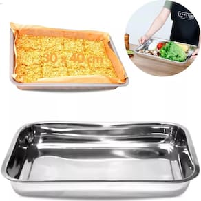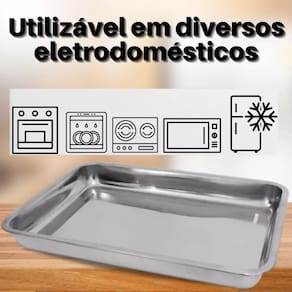 Assadeira inox, modelo retangular, excelente para assar bolos, tortas, aves, carne entre outros. Sua alta qualidade torna este produto essencial para sua cozinha. Proporciona distribuição uniforme de calor e seu material é durável e resistente
