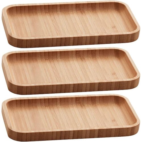 ASPEN DECOR Kit 3 Bandejas de Bambu Retangular para Cozinha 20x10cm Petisqueiras- Lyor Este conjunto de bandeja de bambu retangular é ideal para composição da mesa de servir. Com as bandejas de bambu natural a composição do ambiente torna-se mais aconchegante e decorada. Disponha de peças de qualidade com este jogo de bandeja gamela que podem ser utilizadas em buffets e até mesmo aparadores. Com 3 unidades das bandejas em bambu você organiza a mesa de servir com elegância e praticidade, dispondo de um espaçamento de 20x10cm cada é um tamanho ideal para servir de aparador para guarnições e entradas de pratos. -produzida em bambu 100% natural, a tábua pode apresentar nós e fibras irregulares características da própria matéria prima, assim como variação de tonalidades e brilho que não são consideradas defeito; - Manchas de mofo podem surgir, basta lavar e secar para continuar o uso; - Possui formato retangular com cantos arredondados.