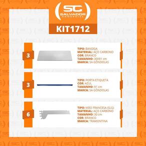 Kit - 3 Bandejas Prateleiras 30x91 para Gôndolas New Plus com Porta Etiqueta Azul - SA Gôndolas